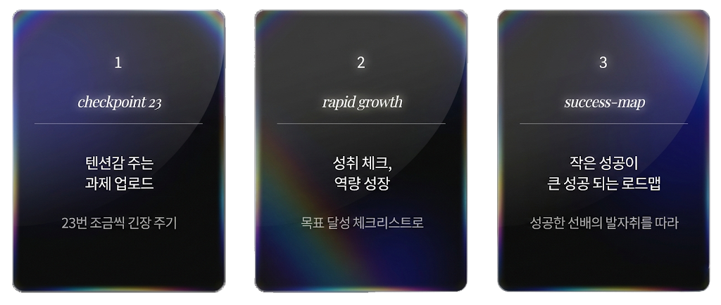 이에 따라 저희 과정에서는 실제 이와 같은 채용 구조에 대비할 수 있도록 준비합니다. 즉, 단순한 공장형 작업물 양산이 아닌, 전략과 실행력을 모두 담은 브랜드 경험 중심의 고밀도 포트폴리오를 제작하는 데 중점을 둡니다. 브랜드 전략, 리서치, 실행 디자인까지 아우르는 실전형 포트폴리오가 필요한 분들에게 적합한 커리큘럼입니다.