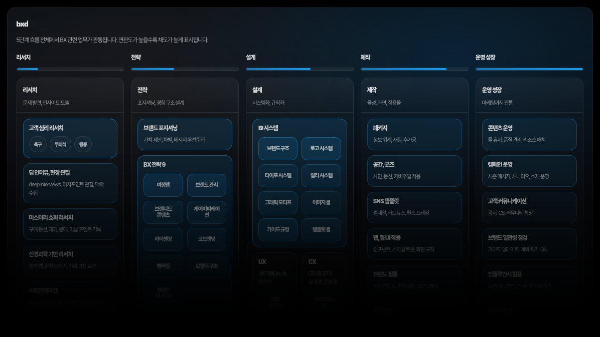 BX디자인은 감으로 버티는 영역이 아닙니다. 기준 없이 하면 매번 새 프로젝트가 시험이 됩니다. 반대로 공식과 템플릿이 있으면, 새로운 프로젝트도 기존의 사고 구조 안에서 처리할 수 있습니다. bxd가 제공하는 것은 디자인을 대신 해주는 해답지가 아닙니다. 대신 바로 복사해서 쓰고, 바로 AI에 적용하고, 바로 포트폴리오에 연결할 수 있는 도구입니다.