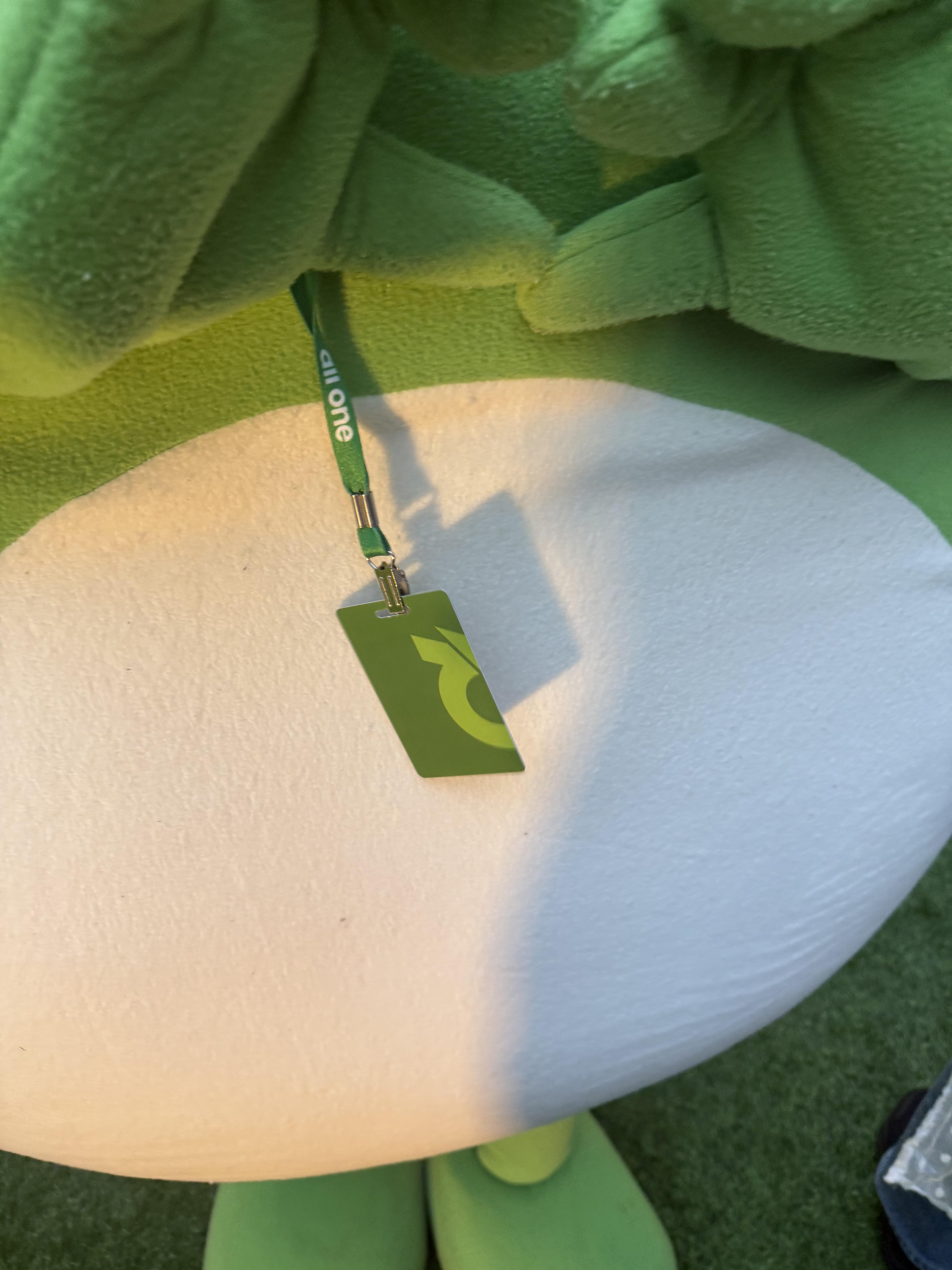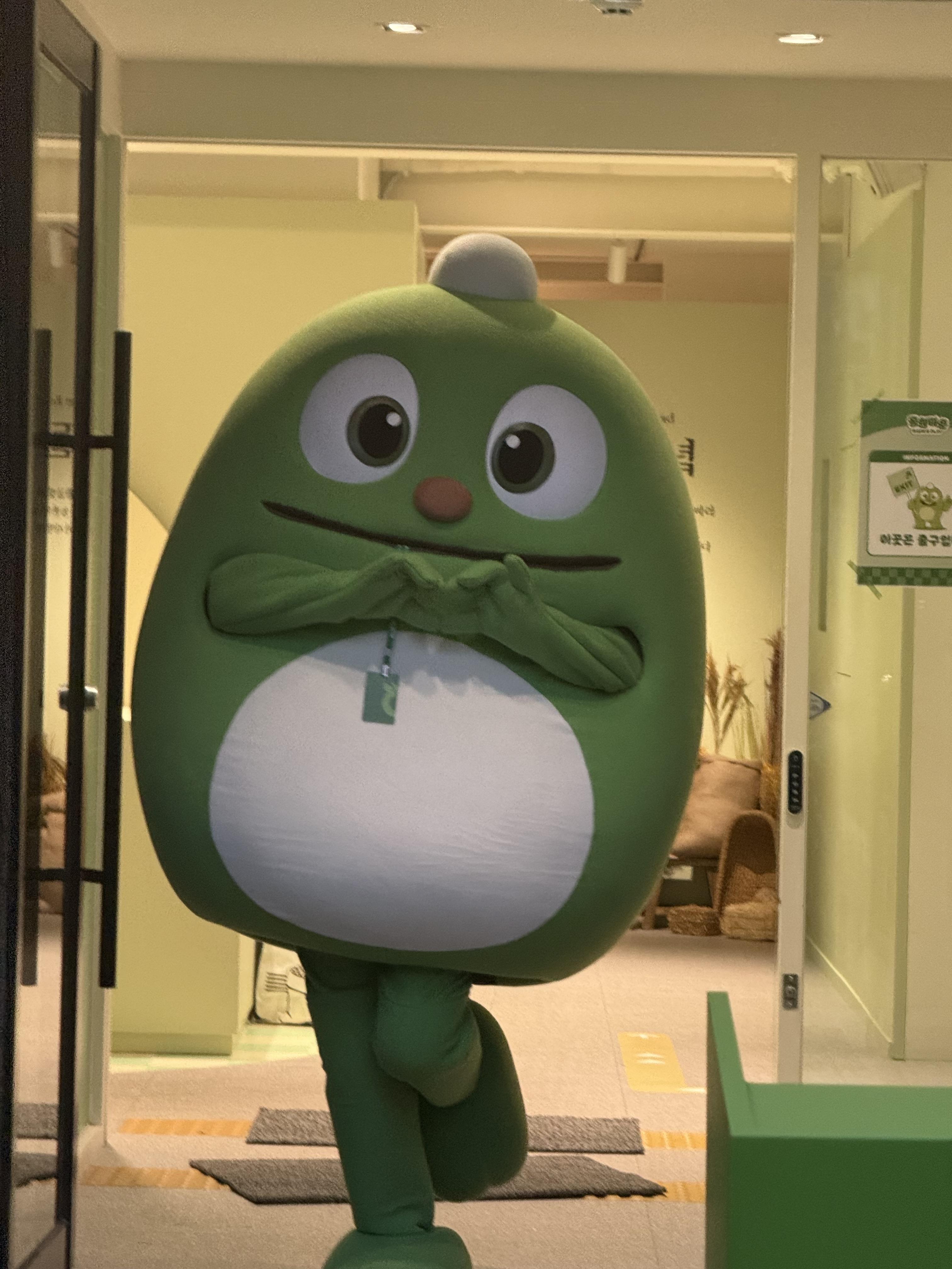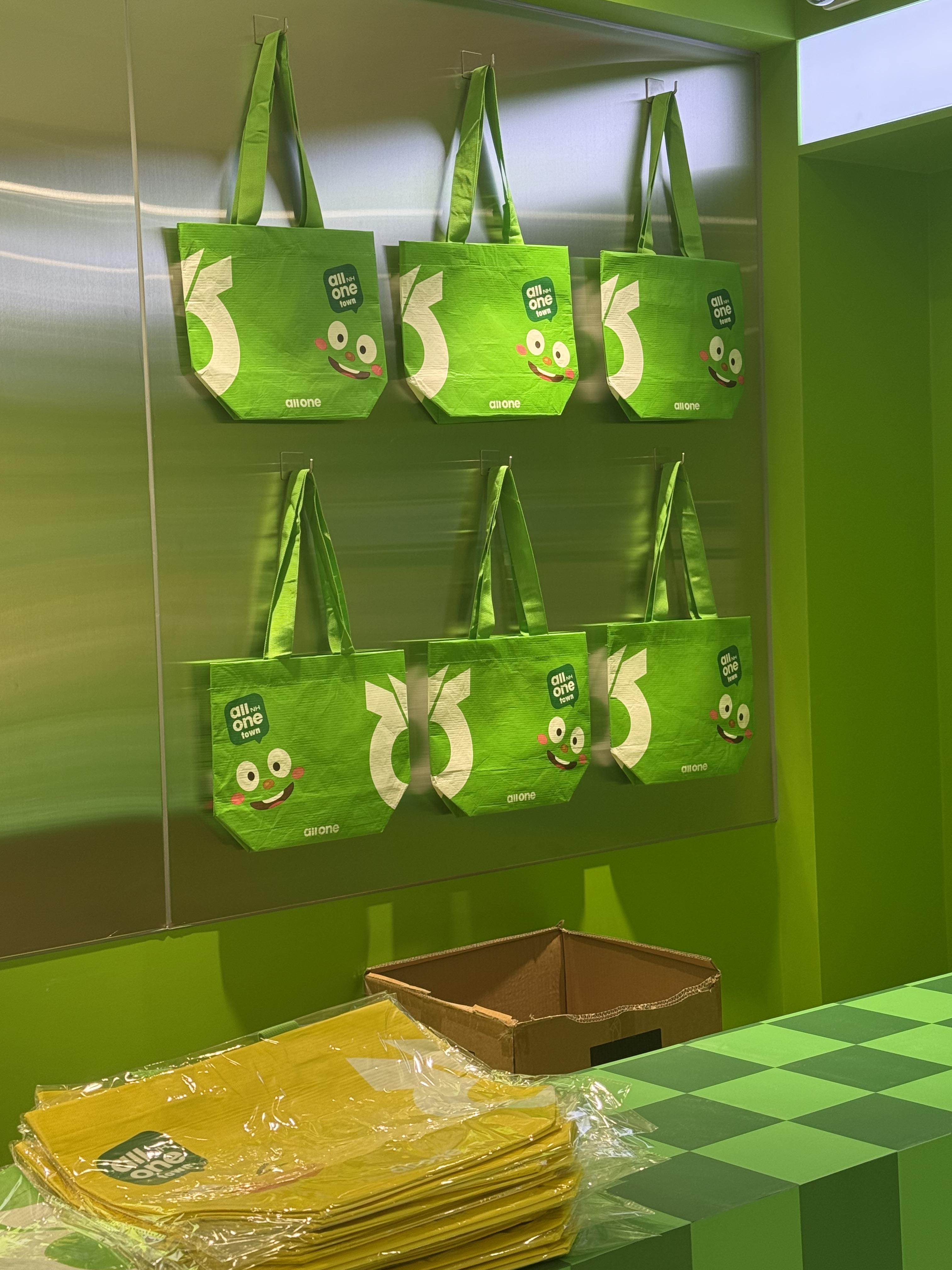 팝업 스토어는 웨이팅 라인에서부터 방문객의 시선을 끌었습니다. 올원타운이라는 테마에 걸맞게 꽤 큰 규모의 장소와 초록 잔디가 인상적이었고, 사원증을 메고 있는 귀여운 '올리' 캐릭터가 반겨주었습니다. 대기줄을 안내하던 직원들의 초록색 신발 등 테마에 맞춘 복장은 대기 초반부터 통일된 세계관을 형성하며 브랜드에 대한 이미지를 잘 보여주었습니다.