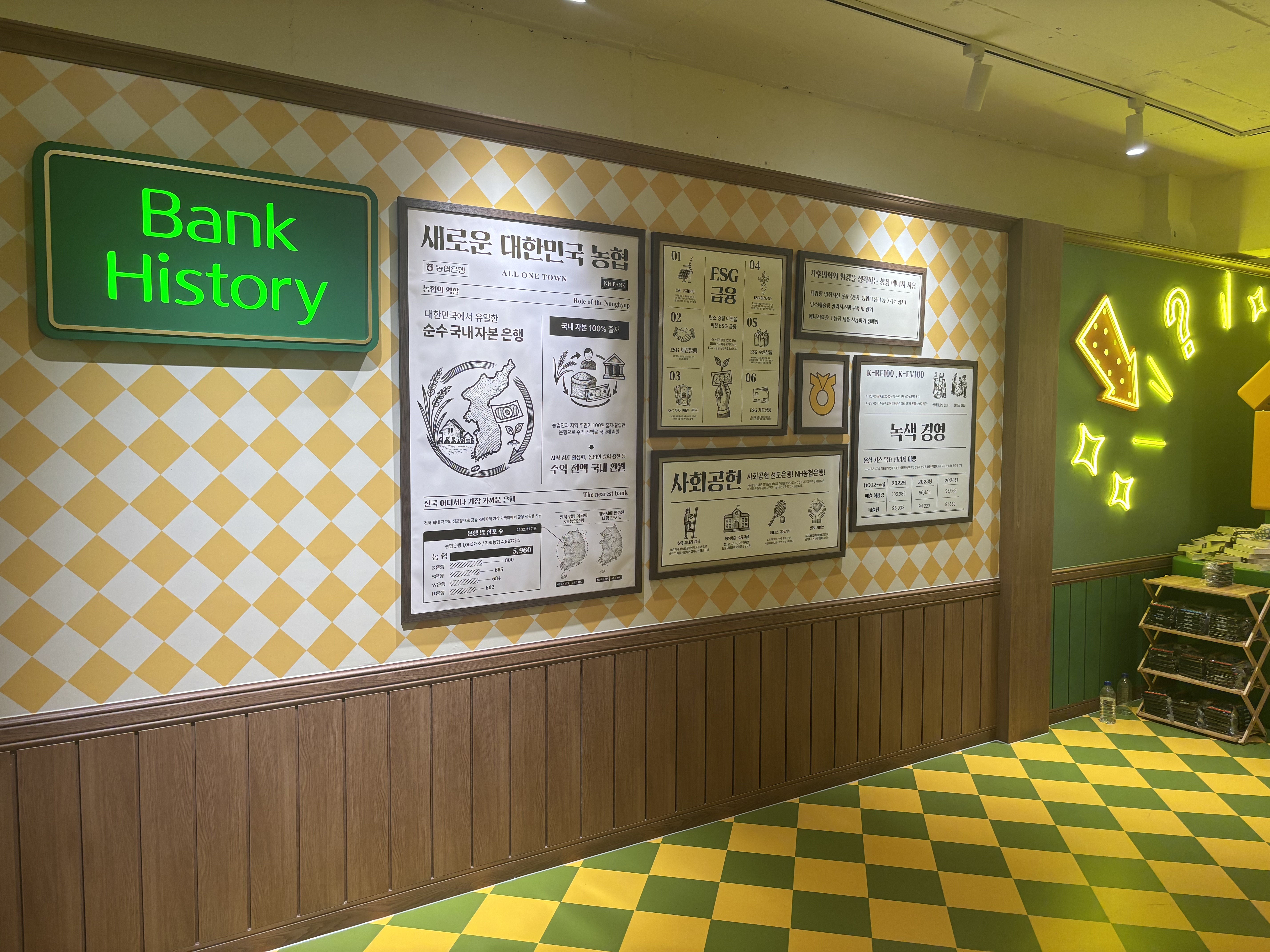 최근 방문한 'NH 올원타운' 팝업 스토어는 게이미피케이션(Gamification)으로 방문객들의 즐거움에 집중하고, 행동 유도 전략을 통해 넓은 팝업스토어 공간 안에서 방문객들의 행동과 동선을 자연스럽게 유도하는 것이 인상깊었습니다. 1층과 2층을 아우르는 초록색 테마 공간 속에서 구현된 다양한 참여와 몰입 전략들을 직접 경험한 사례와 함께 살펴보려 합니다.