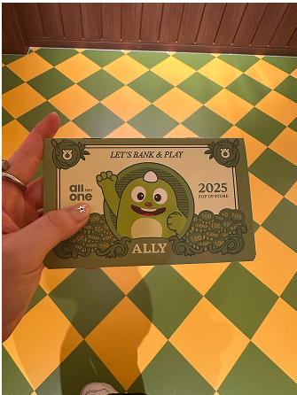 '올리 금고 오픈 챌린지'에서는 직원이 참여를 유도하며 자연스러운 대화를 통해 긴장을 완화하고 몰입을 지원했습니다. 이 게임의 경품으로는 주판이 제공되었는데, 레트로 은행 콘셉트와 일치하며 시각적으로는 흥미를 유발하는 요소였습니다. (하지만 추억을 불러일으키는 리워드라는 점은 좋았으나 실용성이 부족한 상품이지 않나하는 아쉬움도 있었습니다.)