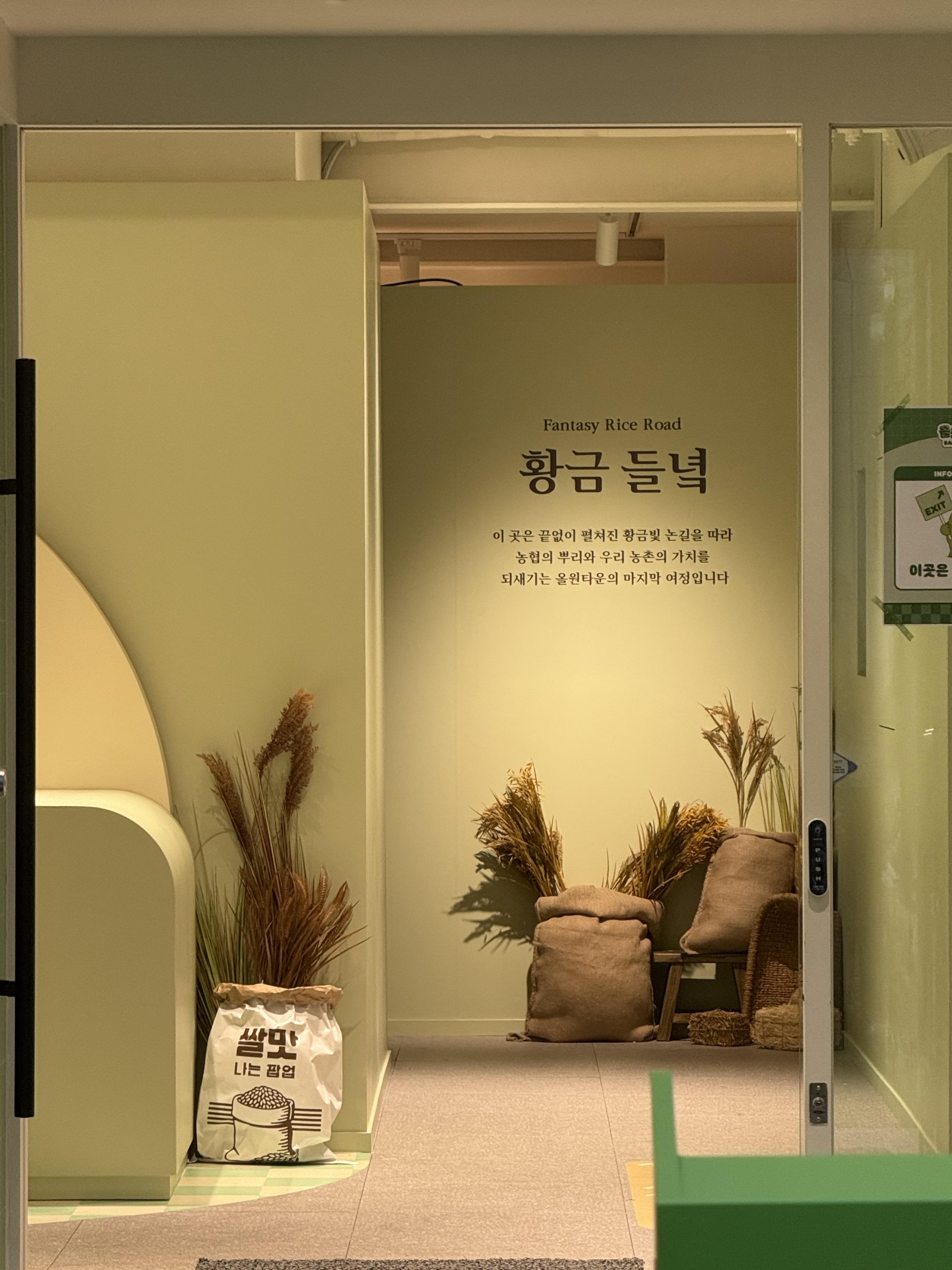 본격적인 게임이 시작되자, 팝업스토어 내에서는 금고의 다이얼을 맞추는 '[올리금고 오픈 챌린지]', 동전을 돌려 앞뒤를 맞추는 '[동전뒤집기챌린지]', 주걱으로 쌀을 퍼 100g을 맞추는 '[쌀그램 챌린지]' 등 마치 '부루마블'을 연상케 하는 경로 기반의 플레이 경험이 펼쳐졌습니다. 게임을 하며 둘러본 공간 곳곳에 놓인 쌀자루 소품과 농협의 다양한 활동 성과가 담긴 액자들도, 1층 테마인 레트로와 우리 쌀 가치를 중요시하는 농협 이미지를 효과적으로 연출했습니다.
